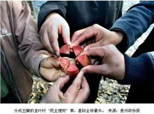 之前新聞報(bào)道過貴州省錦屏縣平秋鎮(zhèn)圭葉村,因一枚由本村村民發(fā)明刻制的“公章”而聞名全國。他們將刻有“平秋鎮(zhèn)圭葉村民主理財(cái)小組審核”字樣的印章分為五瓣,分別由四名村民代表和一名黨支部委員保管,村里的開銷須經(jīng)他們中至少三人同意后,才可將其合并起來蓋章,蓋了章的發(fā)票才可入賬報(bào)銷。這枚印章被網(wǎng)友稱為“史上最牛公章”。
