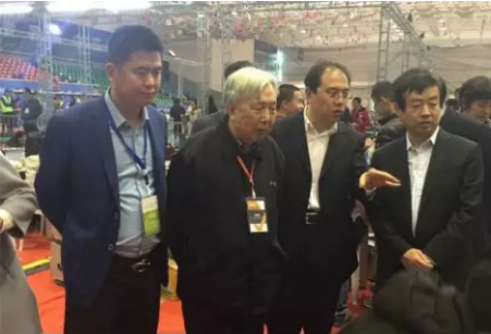 在今年4月舉行的2017RoboCup機(jī)器人世界杯中國賽暨國家機(jī)器人發(fā)展論壇上,愛國小男孩科技CEO盧平山(左一)、中科院吳宏鑫院士(左二)、日照市市長齊家濱(右一)一起參觀賽場
