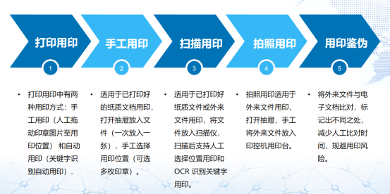 針對企事業單位傳統公章使用管理模式存在的安全隱患,智能印控機應運而生,基于印章保管和印章使用兩方面設計,可實現多枚印章“隔空加蓋”,大批量自動蓋章助力高效作業,有效防范實物印章保管的風險。