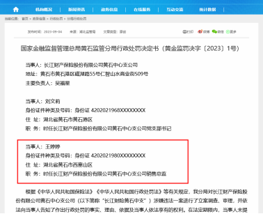 9月4日,國家金融監(jiān)督管理總局官網(wǎng)發(fā)布信息,長江財(cái)產(chǎn)保險股份有限公司黃石中心支公司原銷售總監(jiān)王婷婷私刻公章、騙取客戶資金,被終身禁止進(jìn)入保險業(yè)。