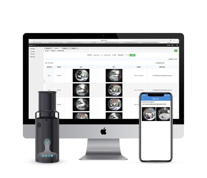 云章智能終端設備精致小巧,攜帶方便。設備兩側設有兩枚400萬高清像素的魚眼鏡頭,其中朝上的鏡頭拍攝用章人員,朝下的鏡頭拍攝蓋章文件,無論是監控模式還是授權模式一按一拍,實時記錄用章人和用章文件。同時,每一次用章信息都將實時傳輸至印章管理人查看并且實時同步至云端,永久儲存,可在云章app和Web端中查看。可隨時對比用章文件是否正確。