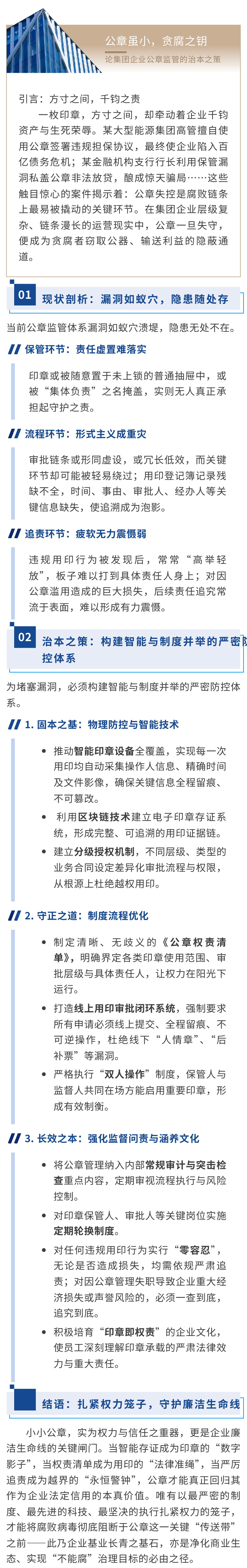 公章雖小,貪腐之鑰——論集團企業公章監管的治本之策