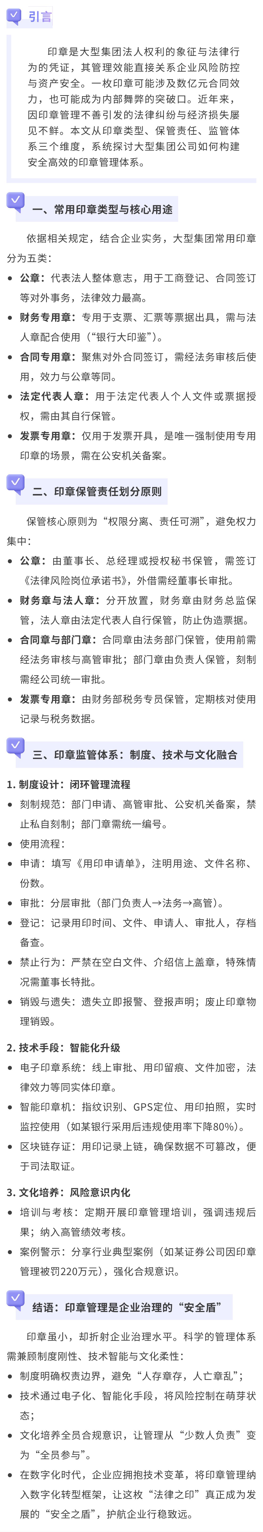 大型集團公司印章管理:核心要點與實踐路徑